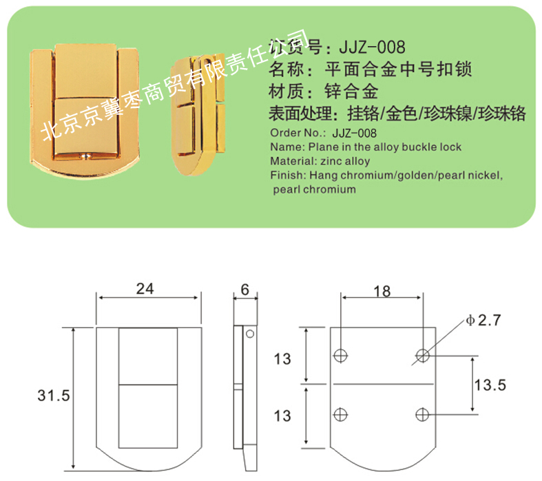 平面合金中号扣锁